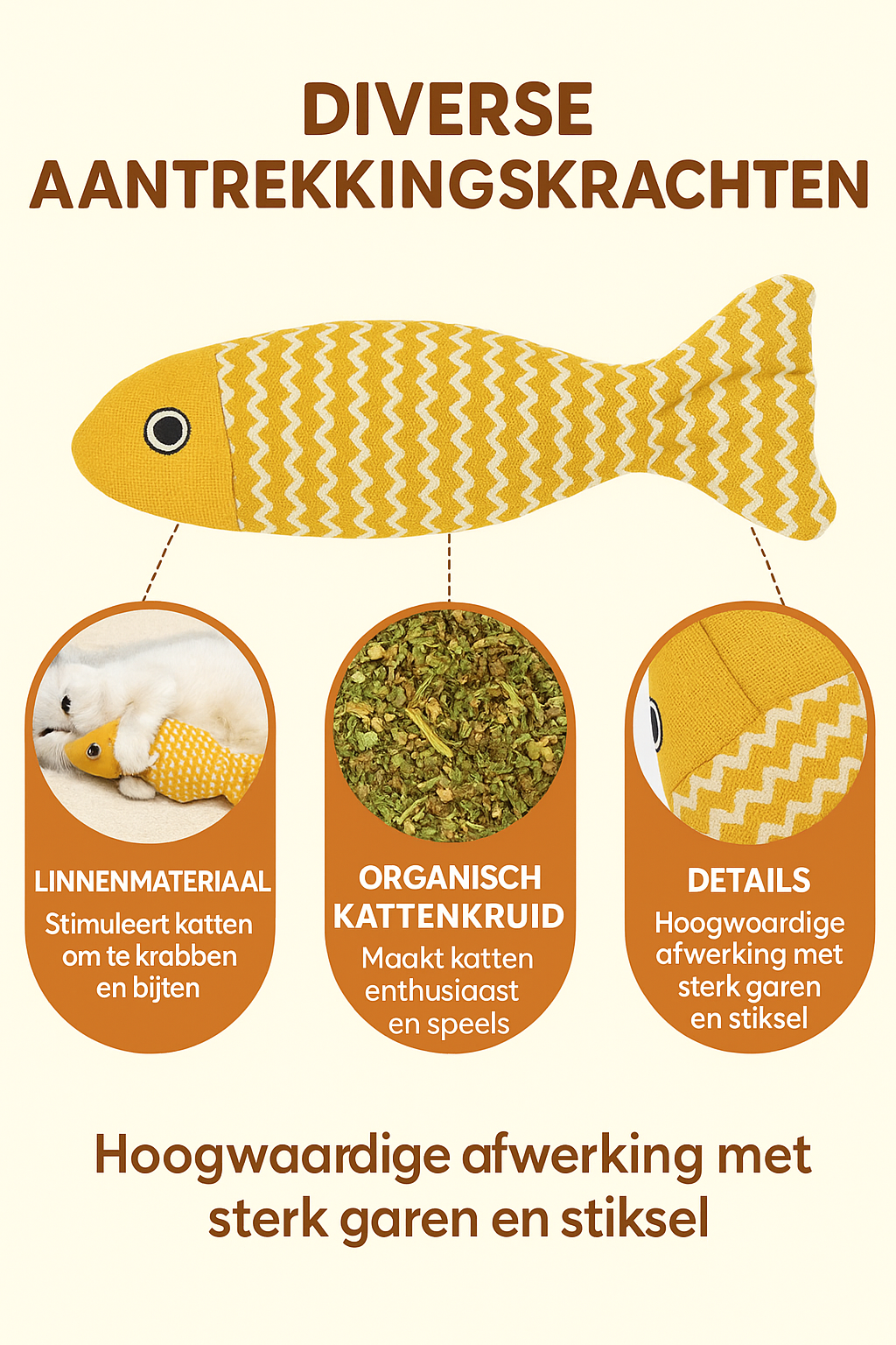 - Kitten- en kattenvriendelijk ontwerp: visvormen die het jachtgedrag stimuleren.