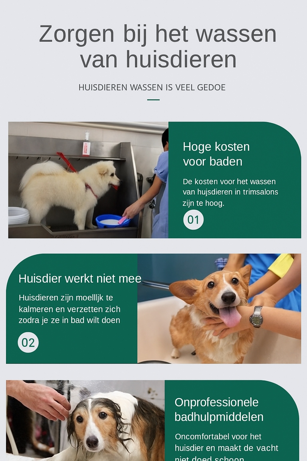 Perfect voor huisdiereigenaren bij badtijd en dagelijkse verzorging, met zachte siliconenmassage voor stressvrije verzorging.