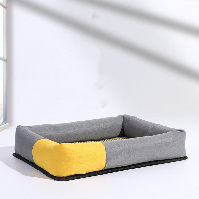 De zetel is gemaakt van doek en fungeert als een comfortabele nest voor je trouwe viervoeter. Beschikbare maten zijn S (45 × 35 cm), M (55 × 40 cm), L (65 × 50 cm) en XL (80 × 60 cm). Kleurenopties: geel, blauw, groen en oranje.