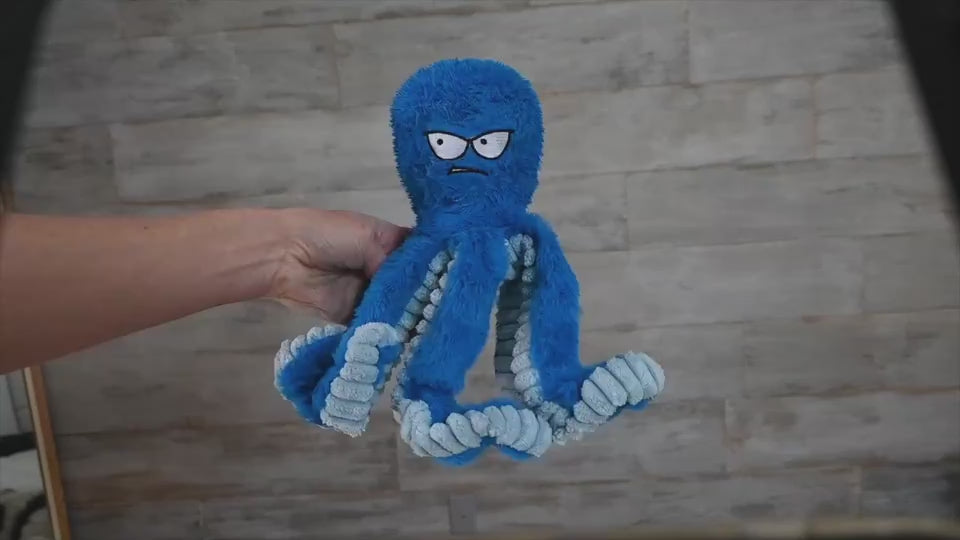 - Vibrant design: Schattige boze octopus in levendig blauw, ideaal voor visuele stimulatie.